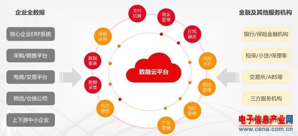 从介绍来看,数融云目标客户包括核心企业、金融机构、中小企业。它是基于企业ERP、订单平台与采购平台等企业全数据的金融融资云平台,为融资企业与金融机构搭建多维数据互通的信息桥梁,向融资企业提供在线融资、在线还款、合同管理、审批管理等融资解决方案和数据增值服务,为银行、保理公司等金融机构提供风险定价、授信管理、贷后管理、产品管理等全方位贷款管理服务,真正让数据产生价值。